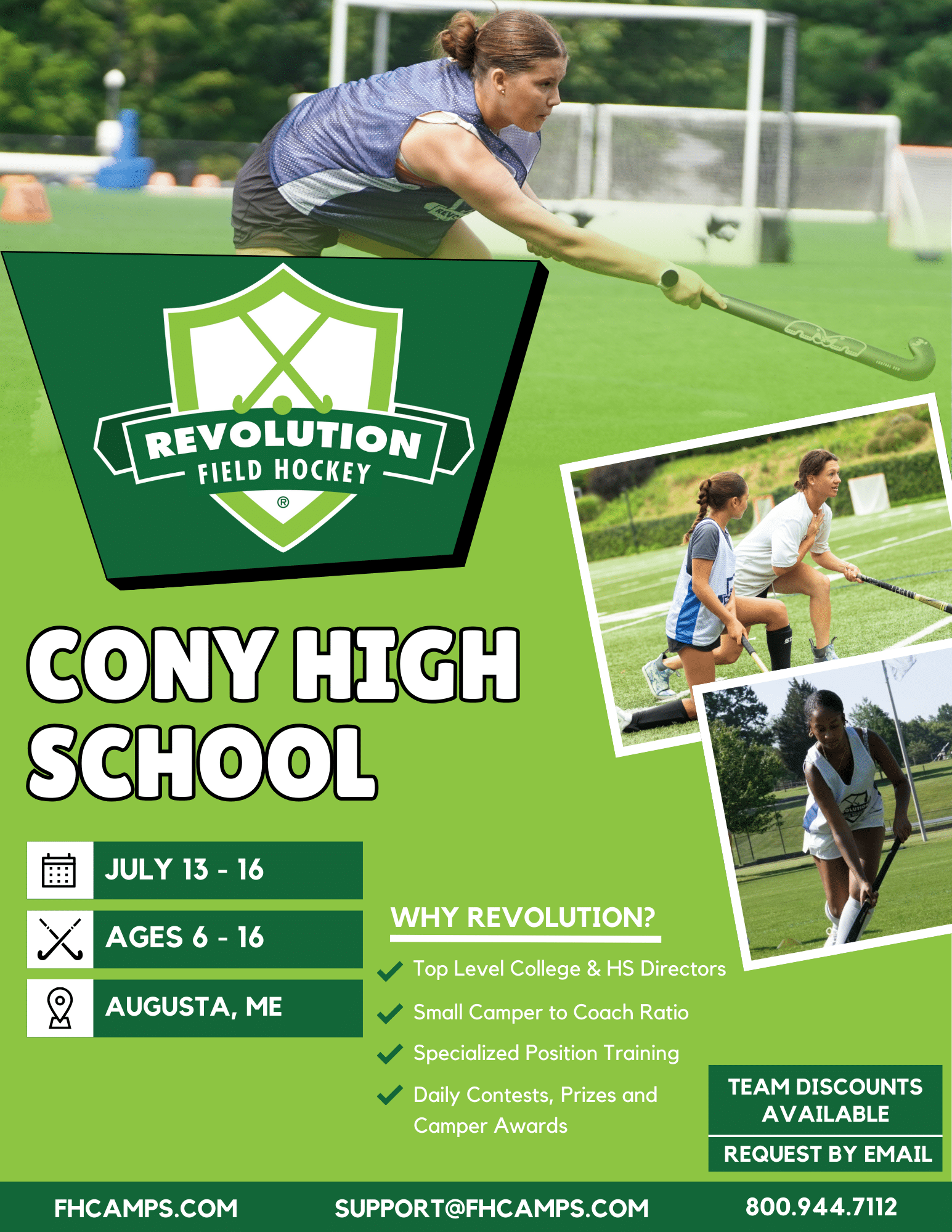 Cony High School in Augusta, ME provides an excellent setting for field hockey training, featuring quality facilities and a welcoming campus atmosphere. This summer, join us for an engaging and high-energy camp experience in Augusta, where athletes will receive expert instruction and have the opportunity to develop their skills in a fun and challenging environment.