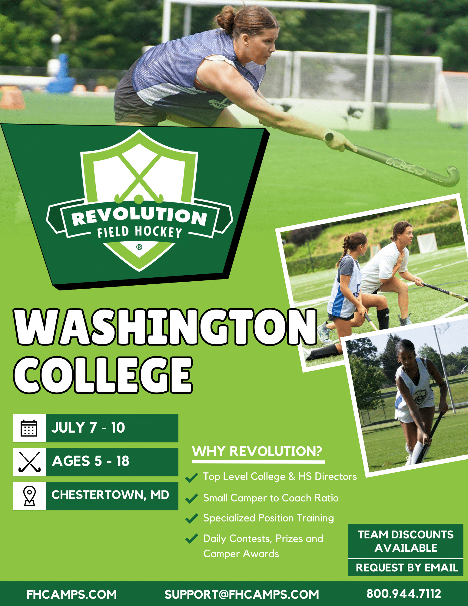 Washington College in Chestertown, MD offers the perfect setting for field hockey training with exceptional facilities. The college creates an ideal space for players to refine their skills and reach their full potential. This summer, join us for a fun and rewarding camp experience focused on enhancing your field hockey abilities, alongside the Washington College coaching staff.