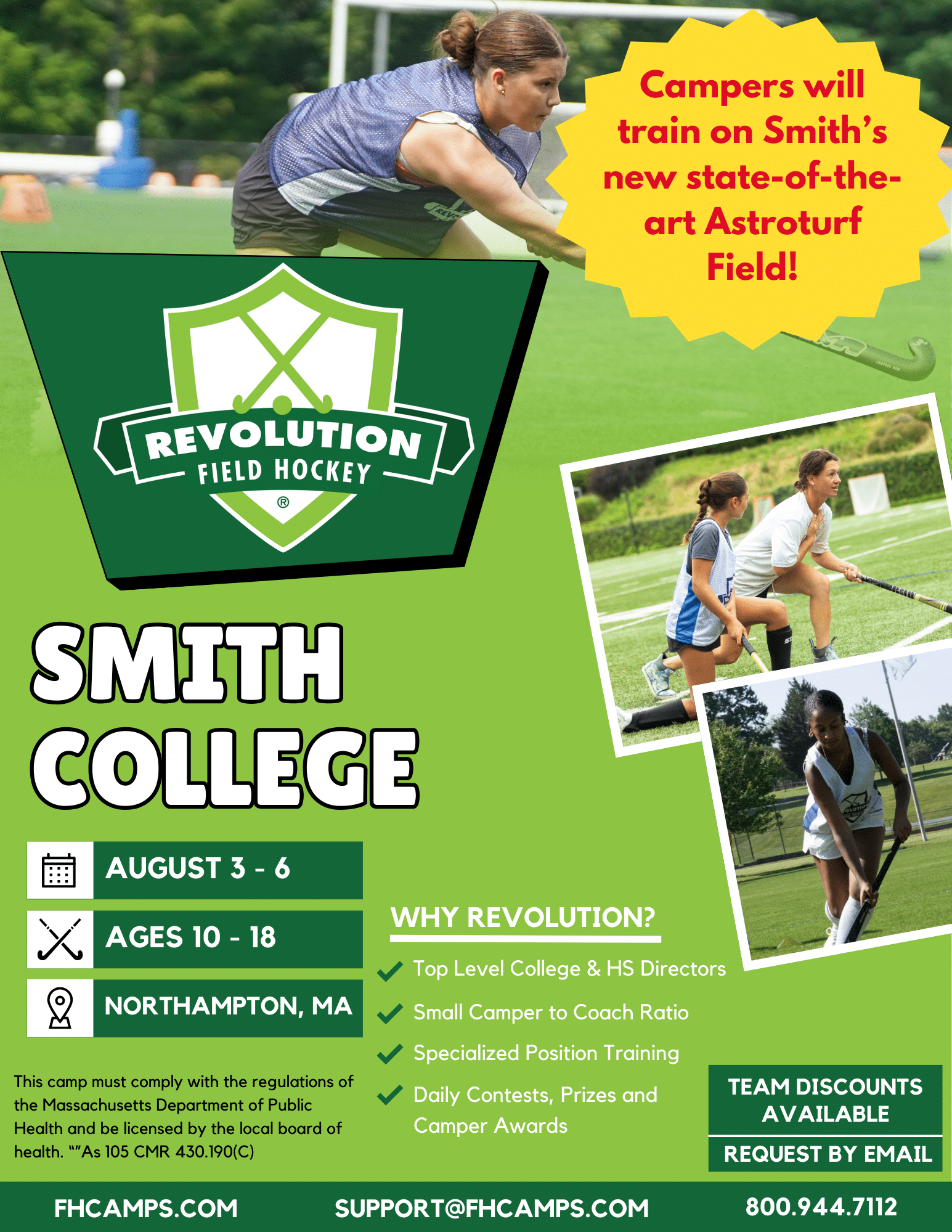 Smith College in located in Hampshire County in the Northampton area, and provides campers with a beautiful setting to enjoy camp and progress in their field hockey abilities. Whether you’re a beginner, or more advanced, these camps will allow you to elevate your game to the next level. This summer, join us for a fun yet focused camp at Smith College, led by the Head Coach of the field hockey program.