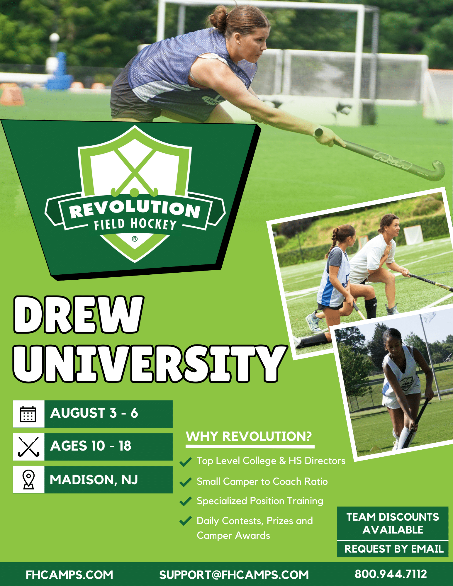 Drew University is conveniently located right outside of New York City and Newark, in Madison, NJ. Drew’s state-of-the-art facilities provide the perfect environment for campers to develop their skills. This summer, join us for a fun camp experience that focuses on improving your field hockey skills.